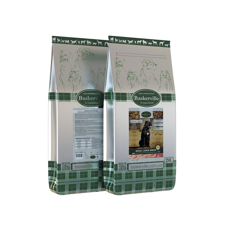 Сухий корм для собак великих порід супер преміум класу Baskerville має спеціально збалансований склад для міцного здоров'я дорослим собакам великих порід. Забезпечує відмінний стан шкіри, а спеціальні добавки сприяють формуванню густого та блискучого вовняного покриву.
