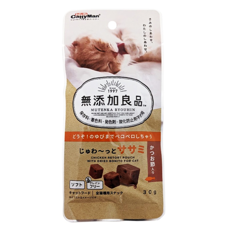Побалуйте своего питомца сочным лакомством для котов CattyMan Chicken Bonito! Маленькие кубики приготовлены из диетического куриного филе и макрели с аппетитной добавкой вяленой макрели – специальный рецепт для привередливых котов-гурманов и питомцев, которые обожают рыбу. Каждый кусочек лакомства имеет нежнейшую консистенцию, обильно пропитан насыщенным соусом и имеет изумительный аромат, который достигается без использования искусственных ароматизаторов.