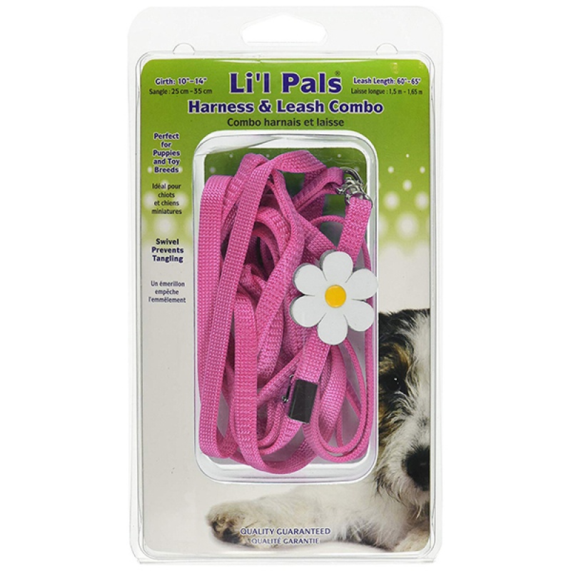 Комплект шлейу та повідець Li'l Pals Adjustable Harness and Leash Combo для міні та малих порід собак, а також для цуценят. Має унікальну цільну конструкцію з акуратною окрасою-квіткою.