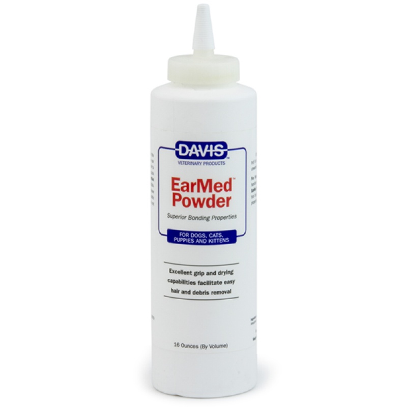 Пудра Davis EarMed допомагає легко видаляти шерсть із слухового проходу котів та собак, яка випадково потрапила туди у процесі стрижки. Пудра щільно фіксується на шерсті та допомагає швидко та ефективно витягти зайві шерстинки пінцетом або руками.
