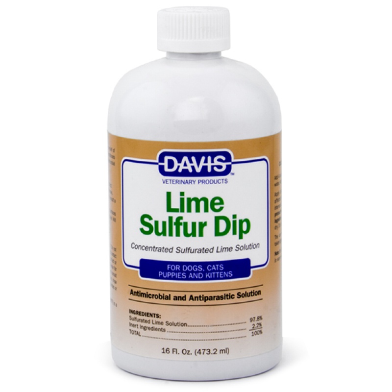 Davis Lime Sulfur Dip - один із найбезпечніших та найефективніших засобів для боротьби з чесоточними кліщами, лишаєм, демодекозом у собак і котів, цуценят та кошенят. Має протисвербіжну, відлущувальну, протипаразитарну, антибактеріальну дію. Призначений виключно для місцевого нанесення на уражені ділянки шкіри.