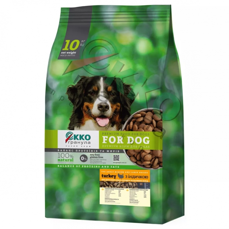 Екко-гранула з індичкою сухий корм для дорослих собак середніх та великих порід чотирилисник