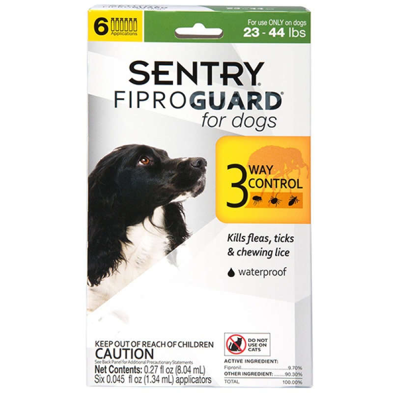 Засіб від бліх та кліщів SENTRY Fiproguard бореться з дорослими паразитами та запобігає повторному зараженню протягом 4 тижнів.