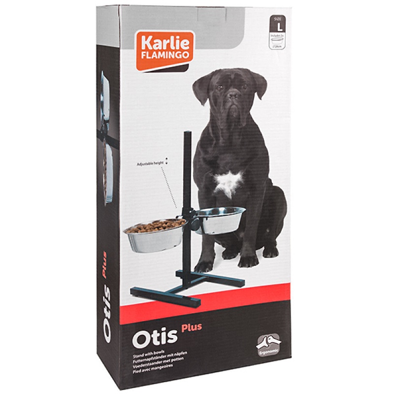 Karlie-Flamingo (Карли-Фламинго) H-FRAME WITH DISHES - стойка со съемными мисками (2шт.), не скользит по полу благодаря резиновым наконечникам на ножках. Высота мисок регулируется с помощью штатива. Миски на подставке используют для растущих щенков или пары собак.