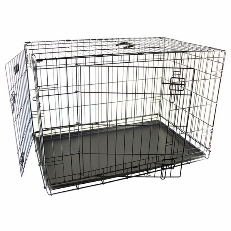 Клетка изготовлена из металла, гальванизирована. Специальная конструкция замков и петель предотвращает произвольное открытие дверей. Благодаря ножкам с резиновым покрытием клетка не скользит, не царапает покрытие. Удобна для транспортировки животного в машине. Легко собирается без использования инструментов, в сложенном состоянии компактна и не занимает много места. Ручка для удобной переноски и пластмассовий поддон с ножками с резиновым покрытием. Двери открываются сбоку и спереди, что доставляет дополнительный комфорт как собаке, так и владельцу.