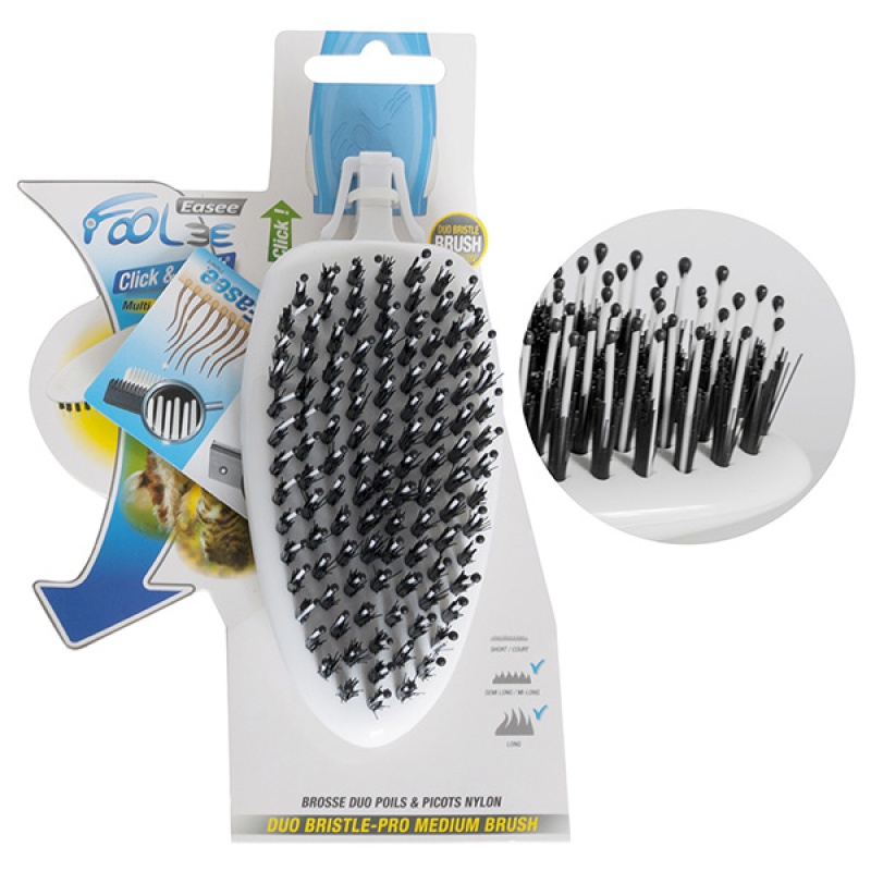 FoOlee Easee Duo Bristle Pro Medium Brush ФОЛИ ИЗИ ДУО БРИСТЛ сменная насадка, щетка-расческа, для средней и длинной шерсти, двойная щетина