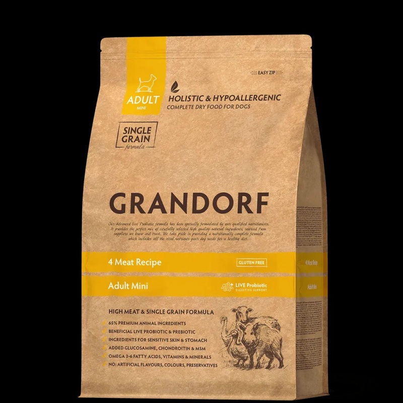 Grandorf DOG 4 MEAT MINI Грандорф корм 4 види м'яса з пробіотиками для дорослих собак міні порід