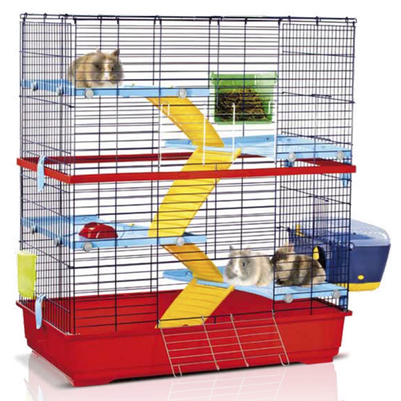 Четырехъярусная клетка для грызунов Imac ДАБЛ 100 идеально подойдет для шиншилл, хорьков, белок. Собирается без инструментов. Просторная клетка укомплектована необходимыми аксессуарами для комфортного содержания грызунов. В комплект входят: 4 подвесные площадки с креплениями и лесенками, поилка для грызунов, внешний навесной домик, кормушка, сенница. Дополнительным преимуществом клетки Imac ДАБЛ 100 является просторный домик с вентиляционными отверстиями, дном и дверцей, это позволяет использовать его и в качестве переноски. Домик размещен на внешней стороне клетки, что значительно экономит пространство внутри клетки.