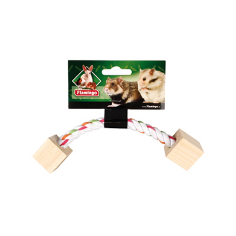 Karlie-Flamingo (Карли-Фламинго) COTTON ROPE игрушка для грызунов, гантель веревочная с деревянными кубиками, 19,5 см