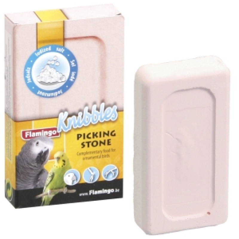 Karlie-Flamingo (Карли-Фламинго) PICK STONE IODIZED SALT содержит необходимые соли и минералы, которые способствуют укреплению иммунитета, предотвращают возникновение заболеваний. Мел для птиц необходим не только как минерал, но и как средство для стачивания клюва в неволе, является натуральным продуктом. Облегчает линьку и стимулирует образование перьевого покрова птиц.