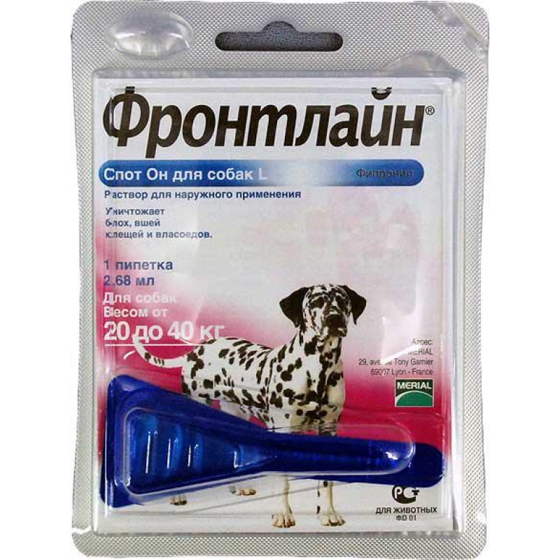 Merial FRONTLINE (Фронтлайн) Spot-On L - капли на холку от блох и клещей для собак 20-40 кг