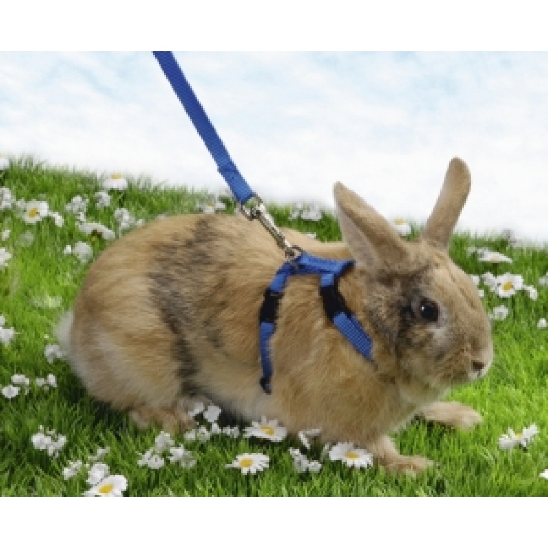 Шлея с поводком для кролика. Замечательное приспособление для выгула домашних грызунов. Материал – нейлон. Шлея плотно сидит на животном, самостоятельно оно из нее не высвободится, что позволит хозяину надежно контролировать все передвижения своего питомца во время прогулки. Шлея удобно сидит на животном, не давит и не жмет, не стесняет его движений. С помощью пластиковых карабинов шлея легко одевается и снимается. Двухметровый поводок крепится к шлее металлическим карабином.