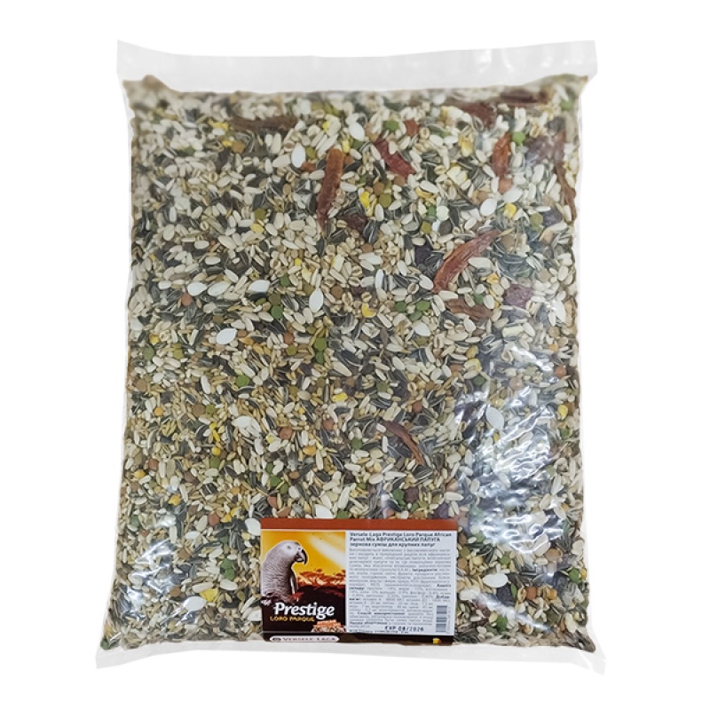PRESTIGE Premium African Parrot - ексклюзивно зроблений з високоякісного насіння, відібраного на основі дії природного харчування Африканських папуг. PRESTIGE Premium African Parrot – це повноцінне харчування, збагачене гранулами V.A.M (Вітаміни, Амінокислоти та Мінерали) для підтримки міцного здоров'я птахів. Гранули V.A.M містять Florastimul® (>1%), які гарантують оптимальне функціонування шлунково-кишкового тракту та чудову кондицію. Спеціально адаптована суміш розроблена на основі консультацій дієтологів заповідника Loro Parque (Тенериф) і використовується як основне харчування для всіх Африканських папуг (Африканських сірих папуг, Сенегальських папуг, Джардинських папуг...)