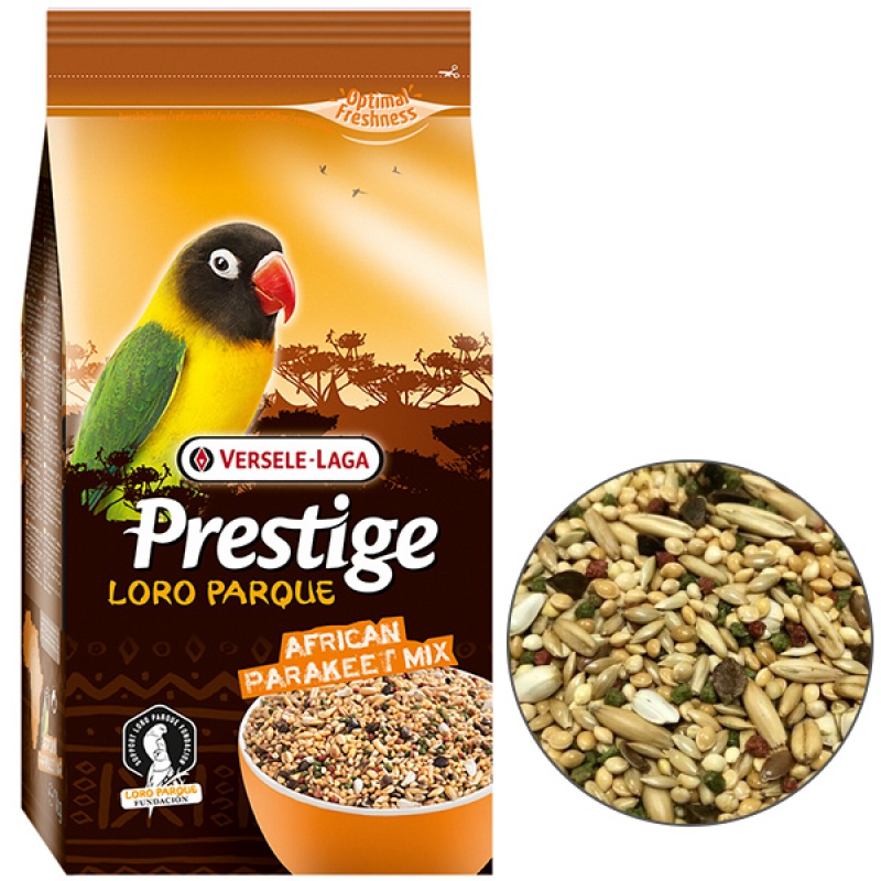 PRESTIGE Premium African parakeet - ексклюзивно зроблений з високоякісного насіння, відібраного на основі дії природного харчування Африканських довгохвостих папуг. PRESTIGE Premium African parakeet – це повноцінне харчування, збагачене гранулами V.A.M (Вітаміни, Амінокислоти та Мінерали) для підтримки міцного здоров'я птахів. Гранули V.A.M містять Florastimul® (>1%), які гарантують оптимальне функціонування шлунково-кишкового тракту та чудову кондицію. Спеціально адаптована суміш розроблена на основі консультацій дієтологів заповідника Loro Parque (Тенериф) і використовується як основне харчування для всіх Африканських довгохвостих папуг.