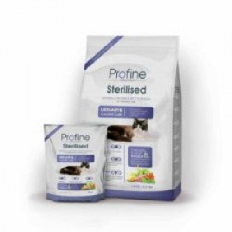 Корм Profine STERILISED создан по специальной рецептуре. В нем 35% протеина сочетается с небольшим удельным весом жиров. За ежедневное поступление тауриновой аминокислоты отвечает присутствующее в составе куриное мясо. Этот продукт обладает диетическими свойствами и благотворно сказывается на работе ЦНС и сердечной мышцы.