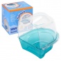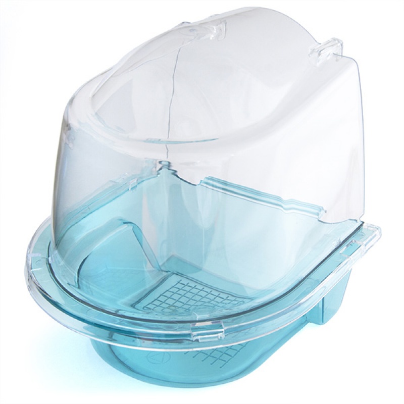 Модель изготовлена из прочного полированного пластика, который выдержит удары клюва ваших пернатых питомцев. Крышка купалки защищает окружающее пространство от брызг, а ее прозрачность дает возможность владельцу следить за уровнем и состоянием налитой воды. Борта высотой 4,5 см.