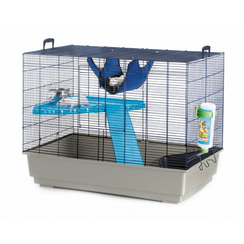 В комплект входят аксессуары: пластиковая платформа, лесенка, миска для корма из нержавеющей стали, гамак, поилка и туалет.Размер 80*50*63 см
