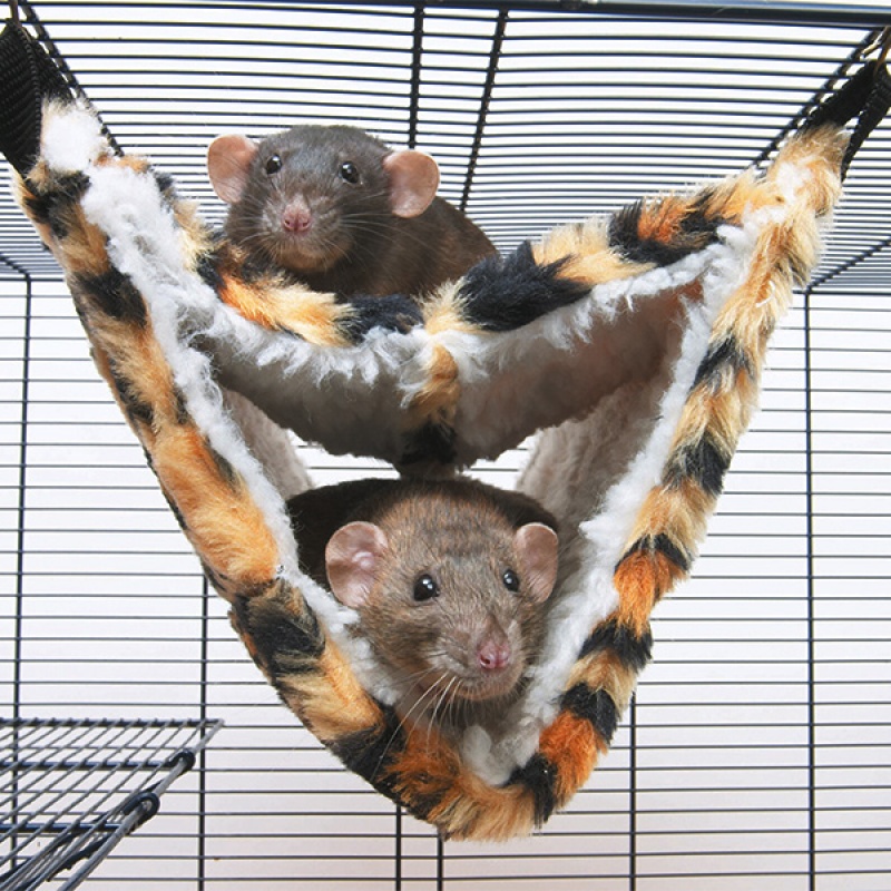 Гамак для хорьков и крыс выполнен из прочного материала, который легко чистить и стирать. Гамак можно использовать как для сна, так и для игр животных, подходит для любых клеток.