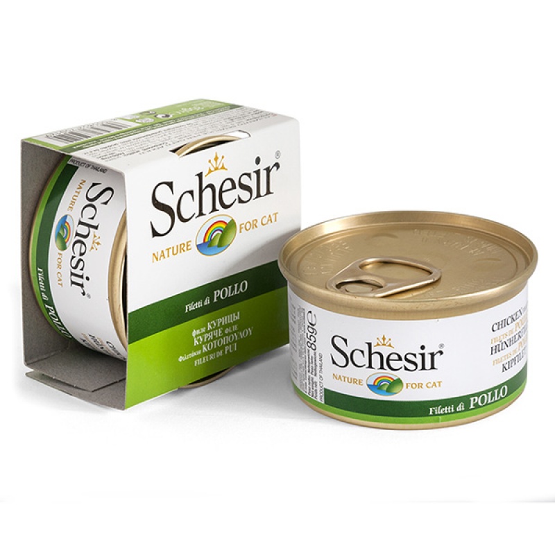 Schesir Chicken Fillets ШЕЗИР КУРЯЧЕ ФІЛЕ в желе натуральні консерви для котів, вологий корм, банка 85г