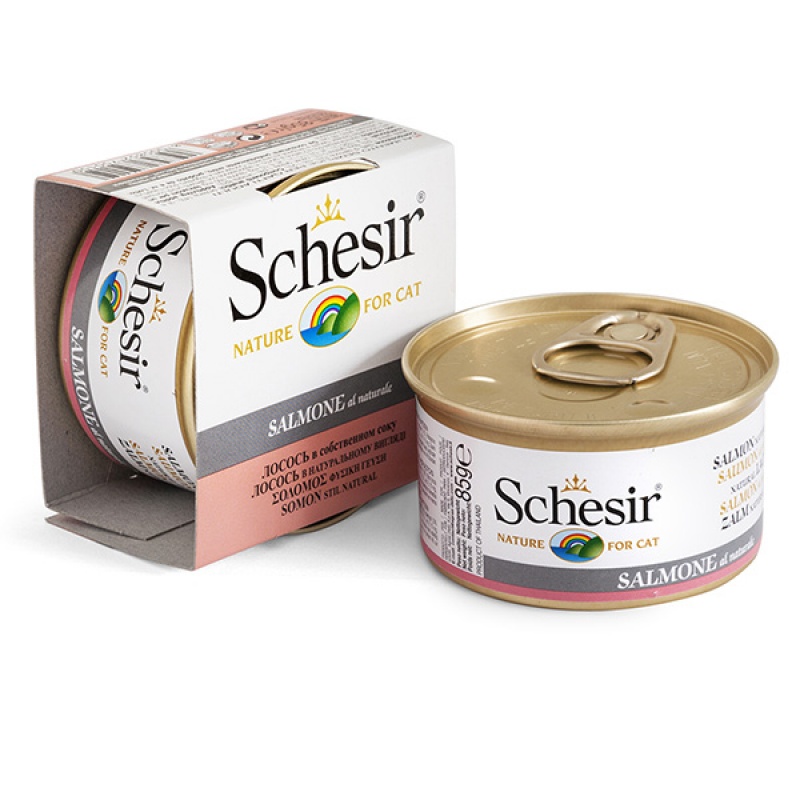 Schesir Salmon ШЕЗИР ЛОСОСЬ в бульйоні натуральні консерви для котів, вологий корм, банка 85г