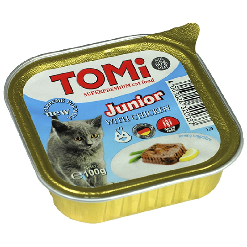 TOMi junior ТОМІ СУПЕРПРЕМІУМ ДЛЯ КОШЕНЯТ консерви з куркою, паштет
