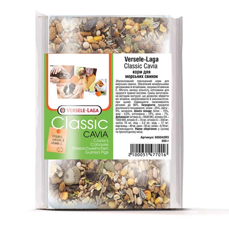 Versele-Laga Classic Cavia ВЕРСЕЛЕ-ЛАГА КЛАССИК КАВИА зерновая смесь - сбалансированный полноценный корм для морских свинок. Cостоит из сухой травы, зерна и овощей в виде хлопьев и экструдированных гранул, особенно привлекательных для морских свинок.